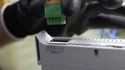 - Remove the Phoenix connector from the top to power off the device.